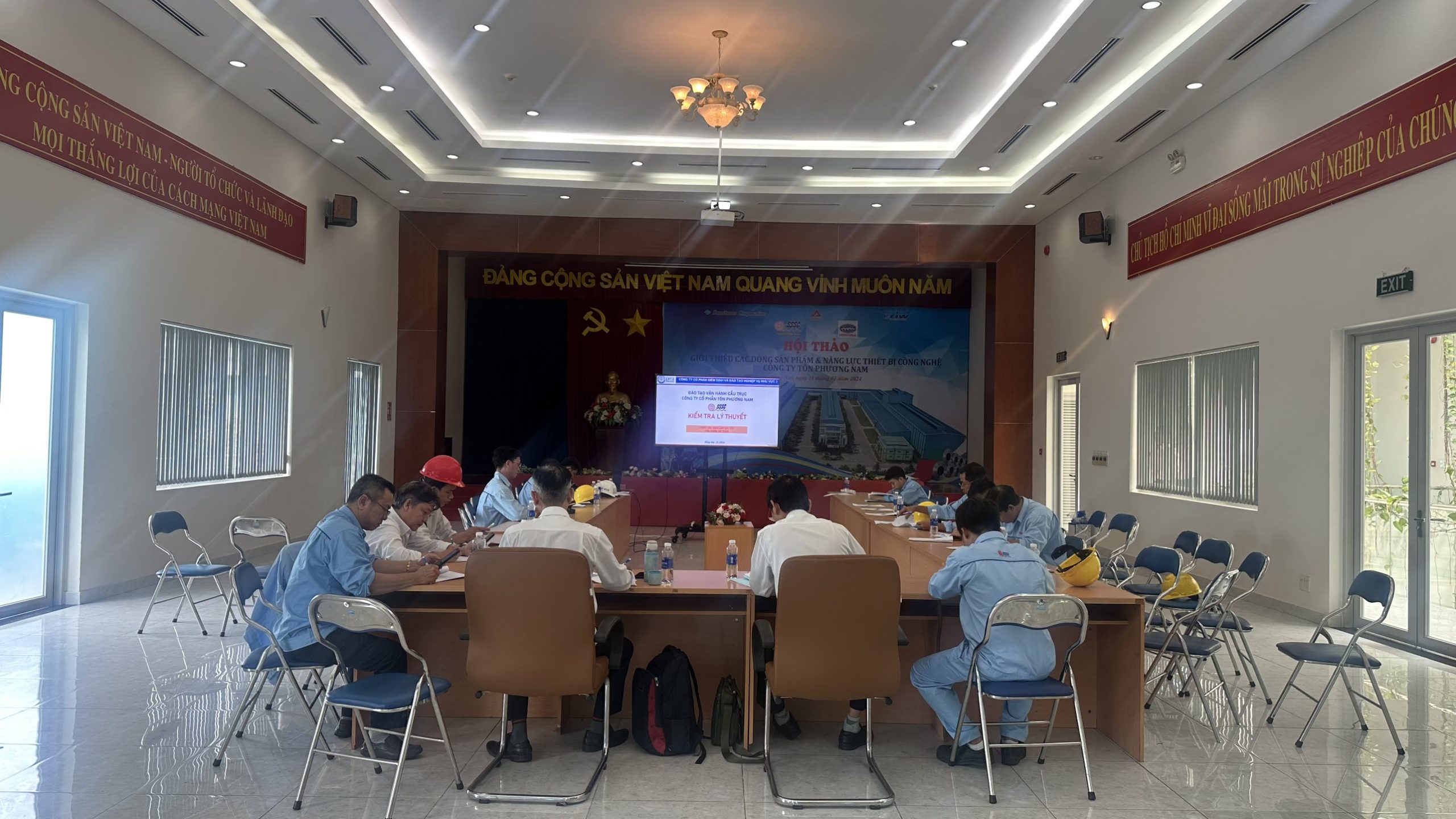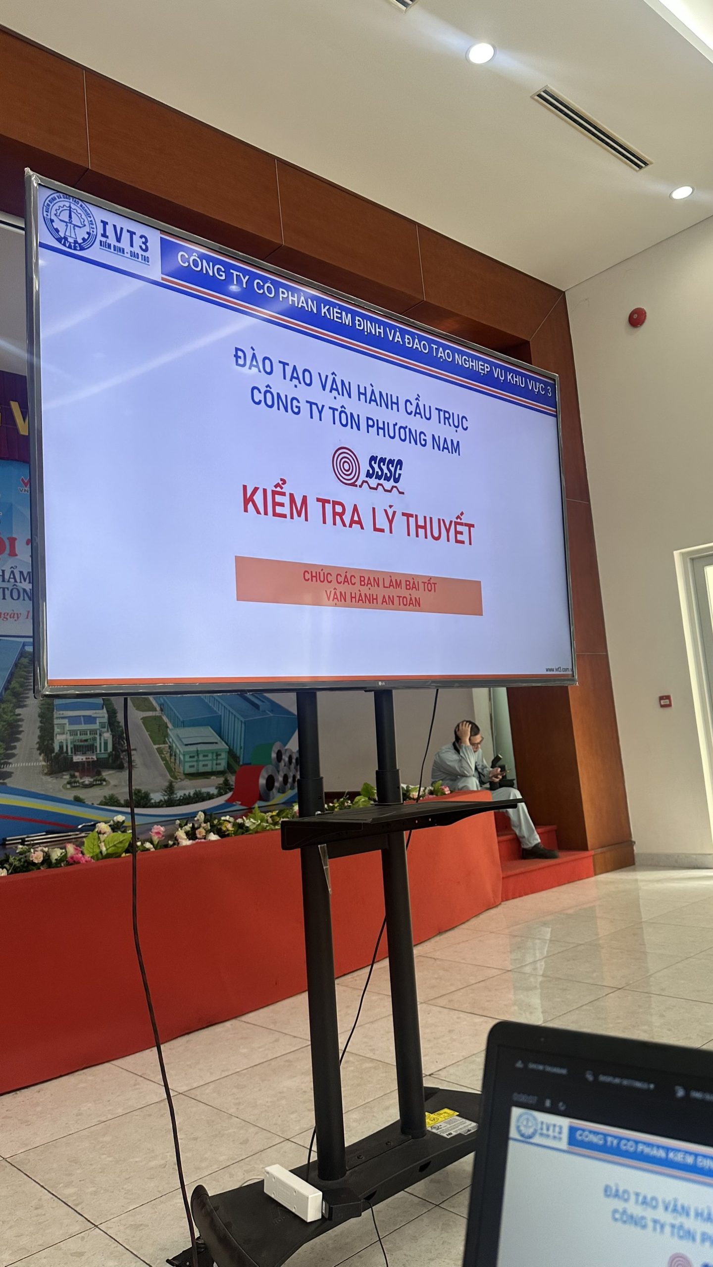 Dưới đây là dự án đào tạo vận hành cầu trục tại nhà máy tôn Phương Nam của Kiểm Định Và Đào Tạo Nghiệp Vụ 3. Quá trình đào tạo diễn ra thuận lợi, đầy đủ cả phần lý thuyết và thực hành. Qua khóa học, các học viên tại nhà máy đã nắm vững kiến thức và thành thục các kỹ năng cần thiết trong vận hành cầu trục.